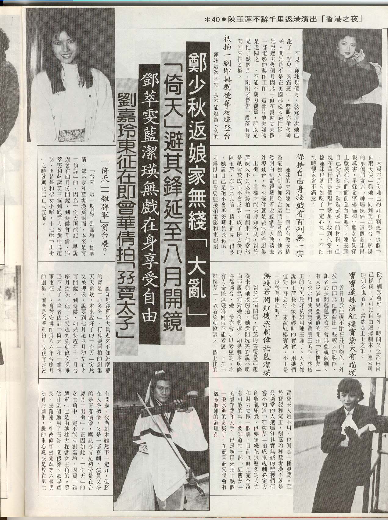 [The report about Idy ends here. It goes on to comment the possibility of TVB making this grand show of "Dream of Red Mansion", casting Tony Leung as Jia Bao Yu and Liu Jia Ling as Lin Dai Yu. After all the possibility is slim, as the cost will be enormous and TVB won't be stupid enough to input such an venture. (However, they did make a venture in making Grand Canal one year later, possibly given the assurance of the strong case of Idy, Tony, Felix, and lots of other brilliant stars.)]